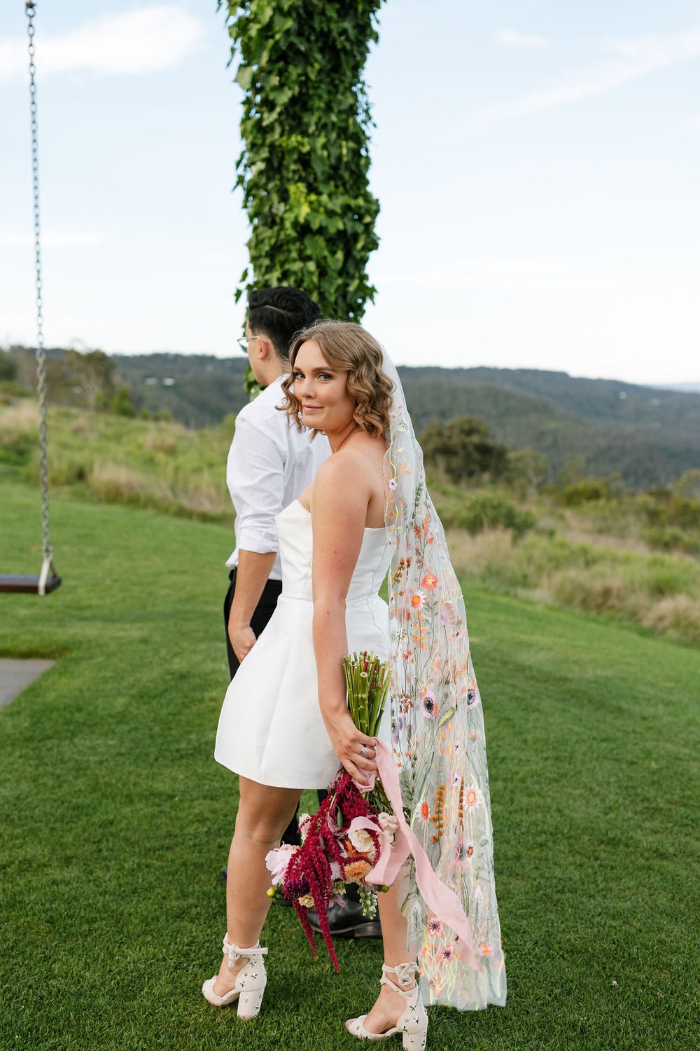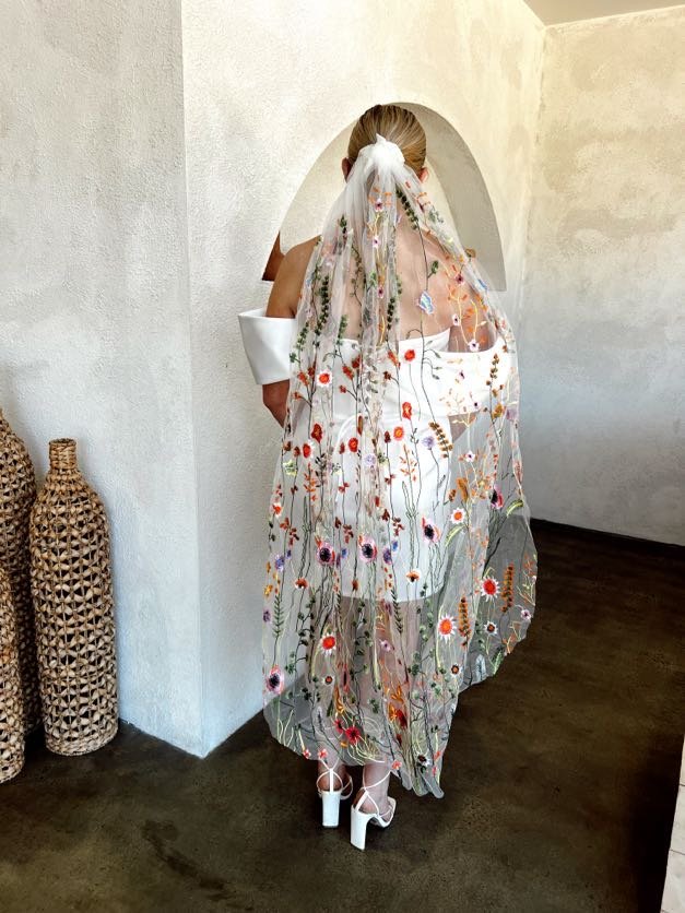 The stunning floral colourful veil. Perfect for adding interest to your bridal look.