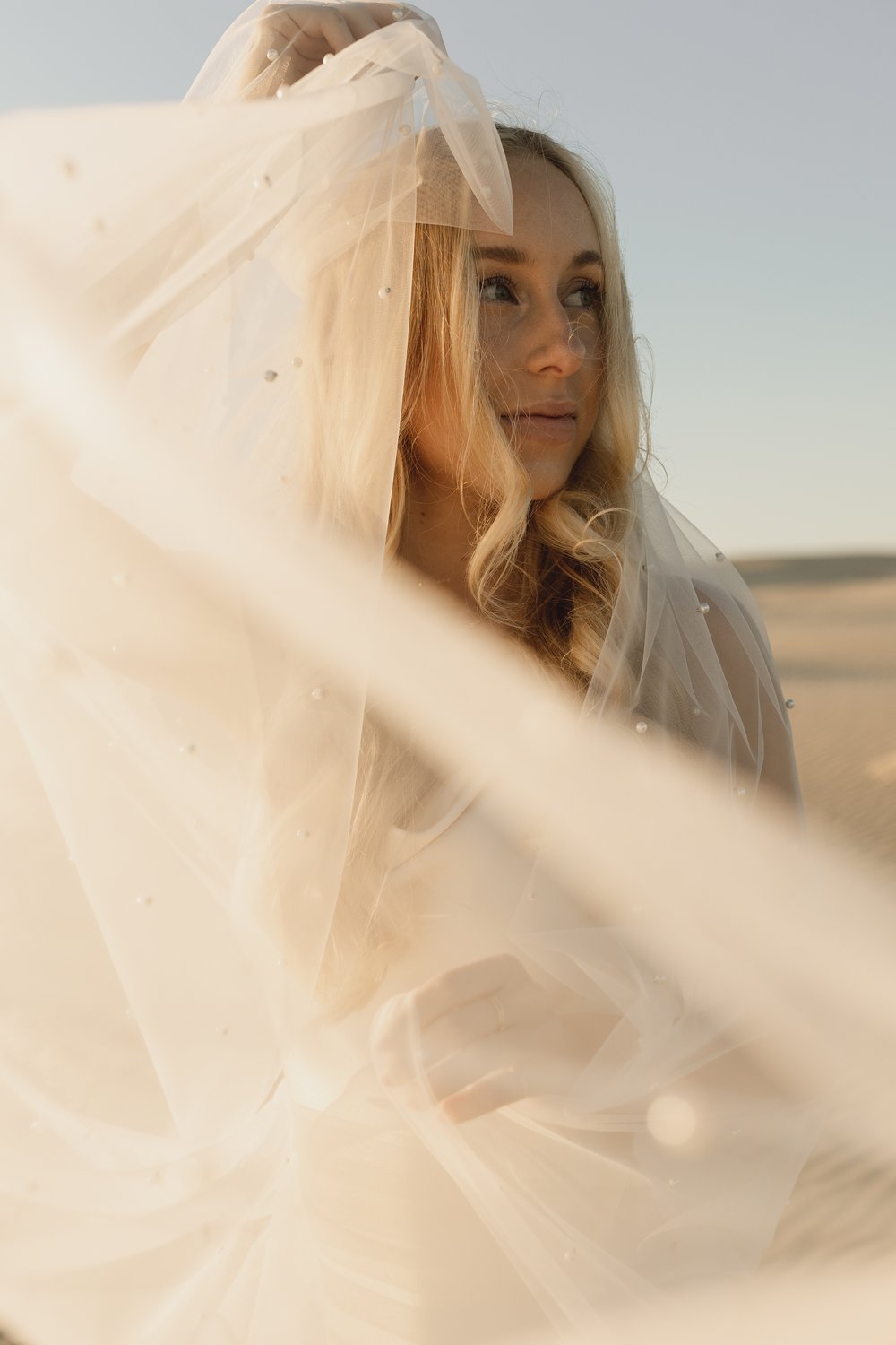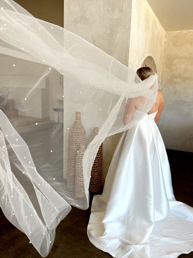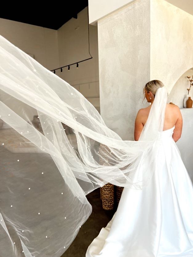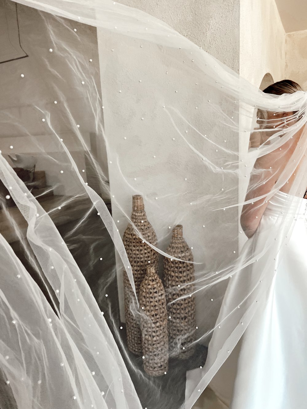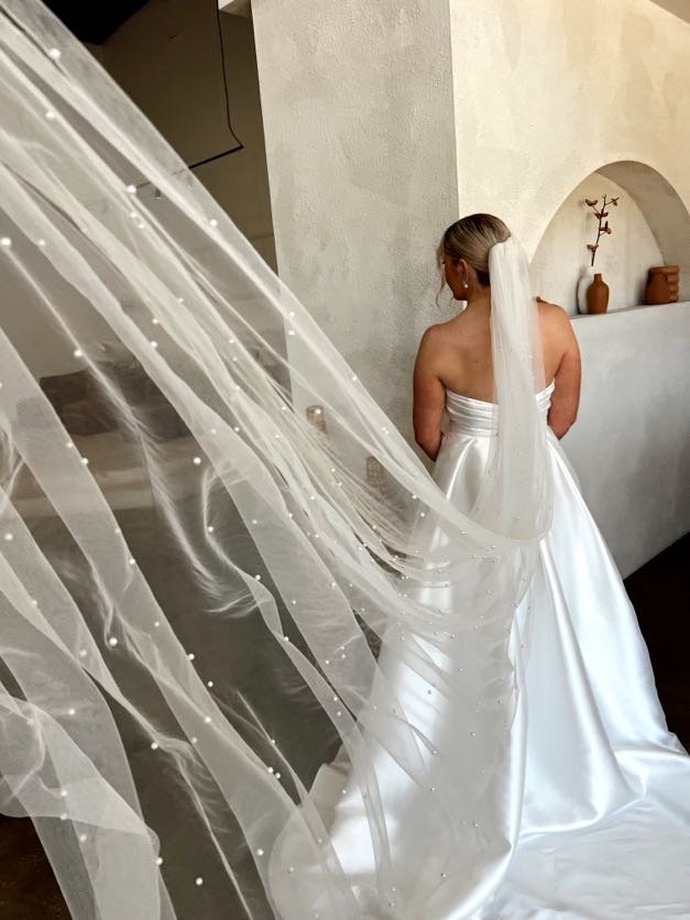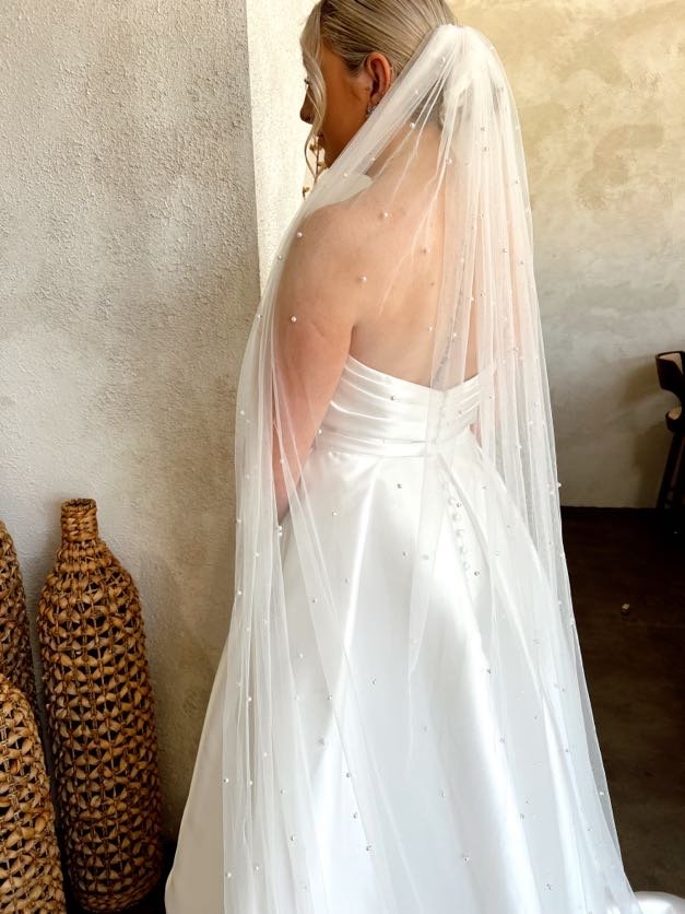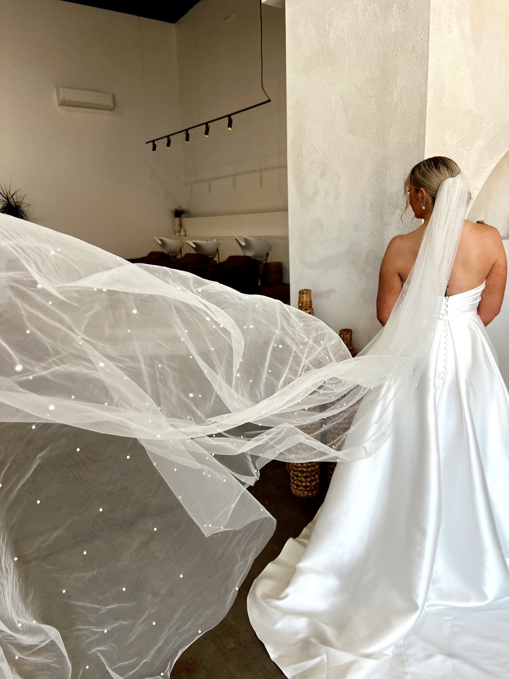 Our gorgeous 3m long soft tulle pearl veil. Hand punched pearls.