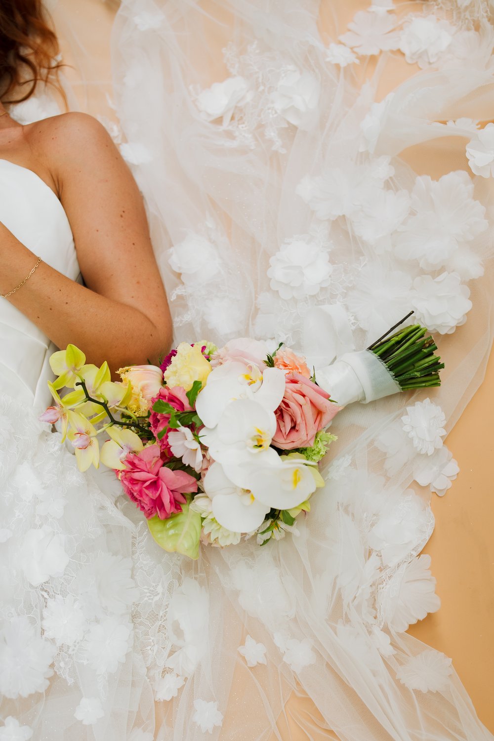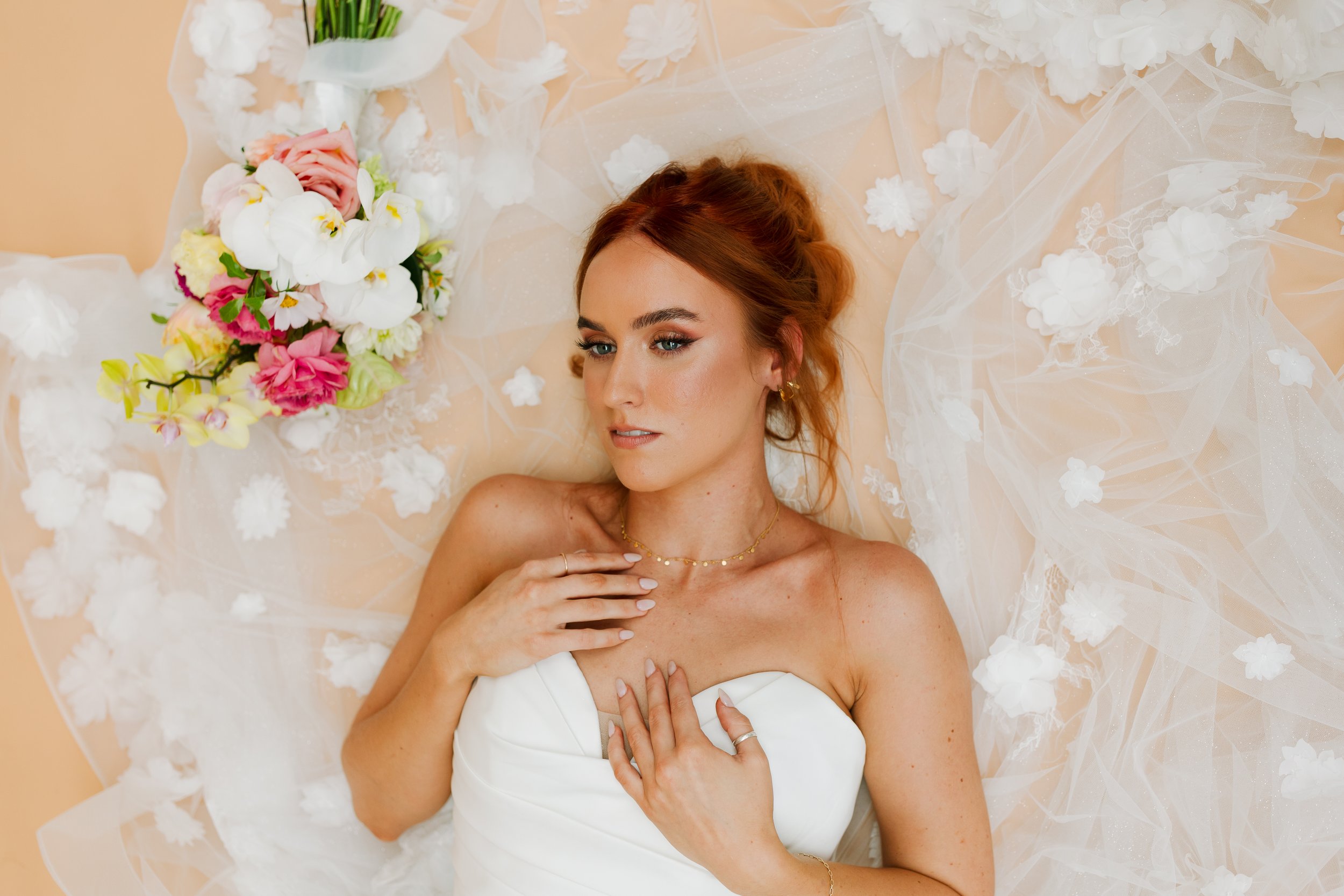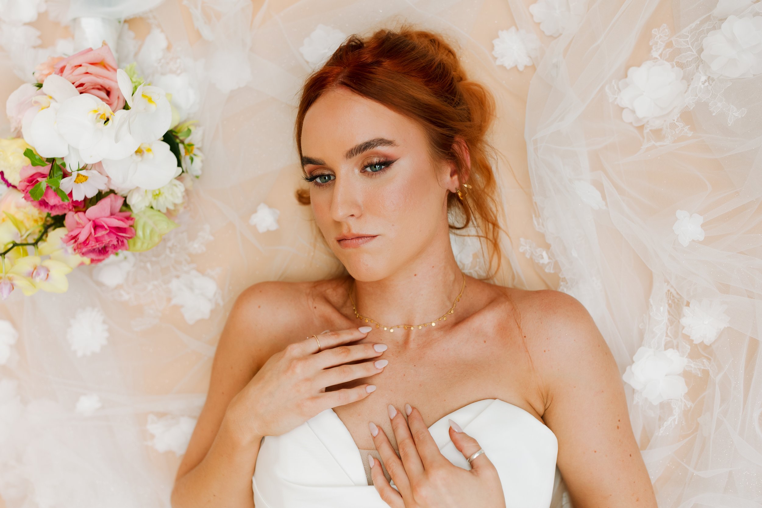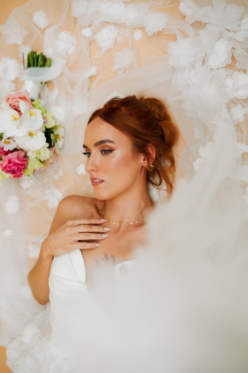 This breathtaking gown is a bit of a fan favourite! We’ve done her as a high-low, with a detachable skirt or used fabric as a mini. She’s totally customisable – or keep her as is! Isn’t she a cutie? The stunning glitter tulle, topped with chantilily lace and floral applique makes the skirt not only super dreamy but also carefully thought out with an eye for bridal fashion chasing the wow moment. The underlay is able to be fully lined for a more traditional look.