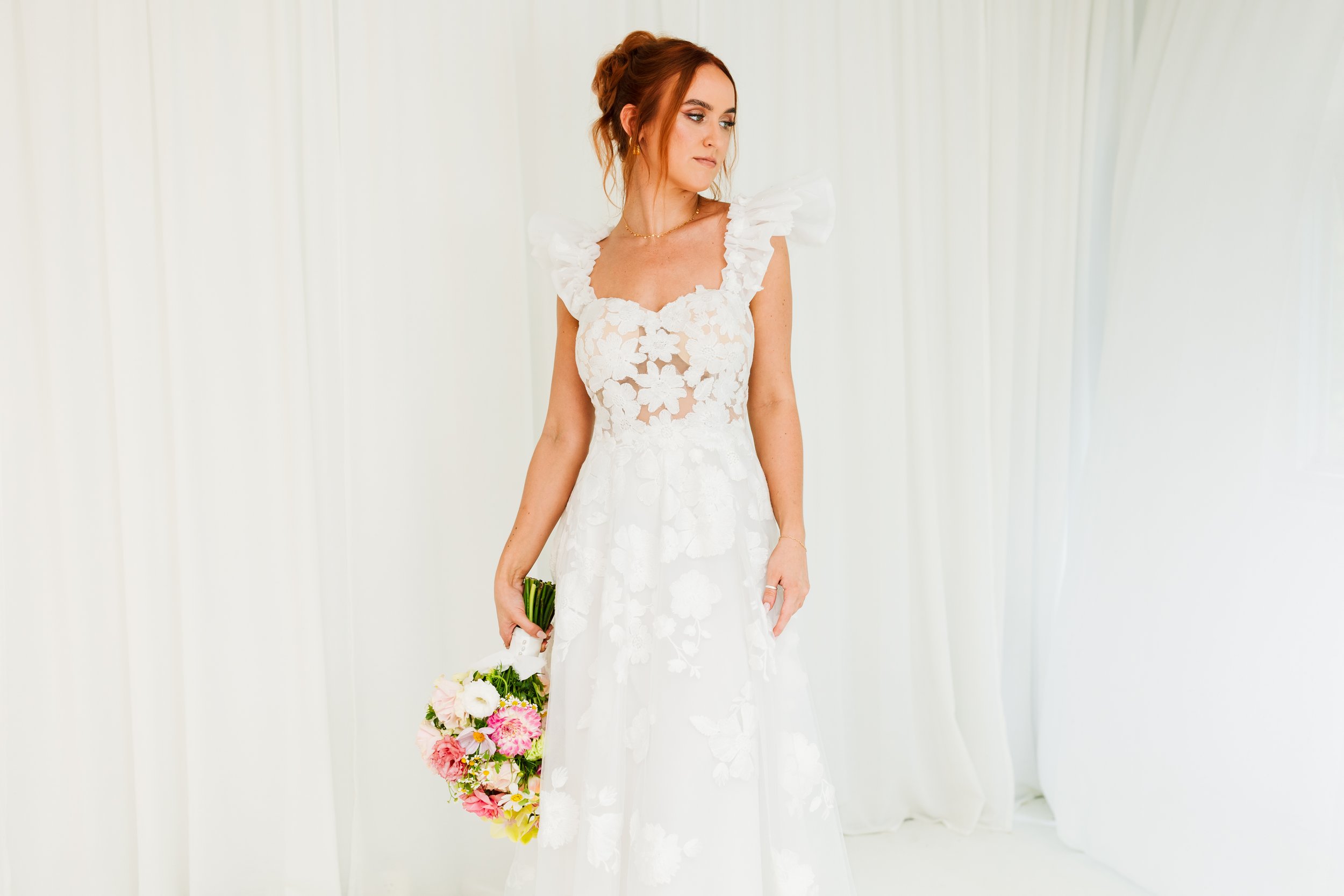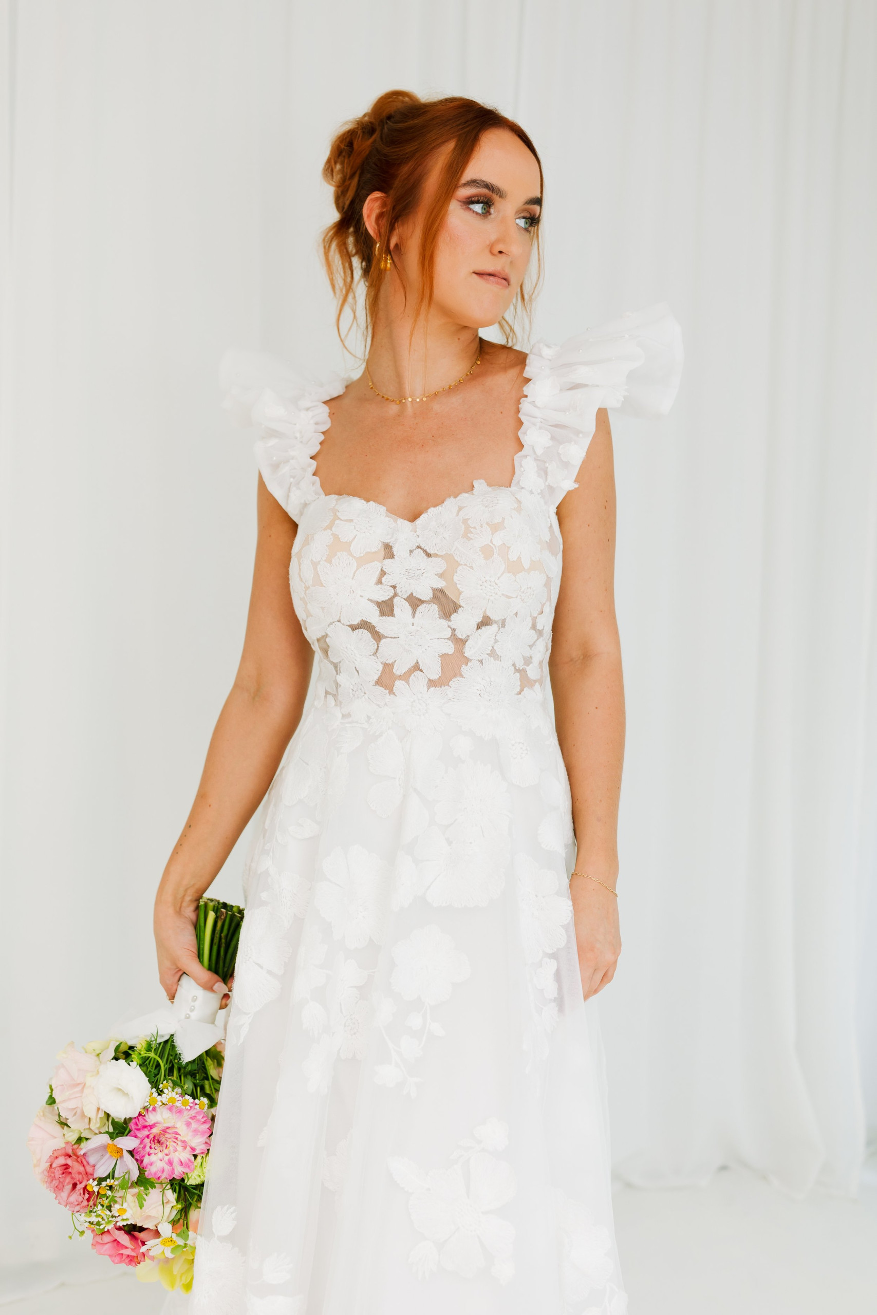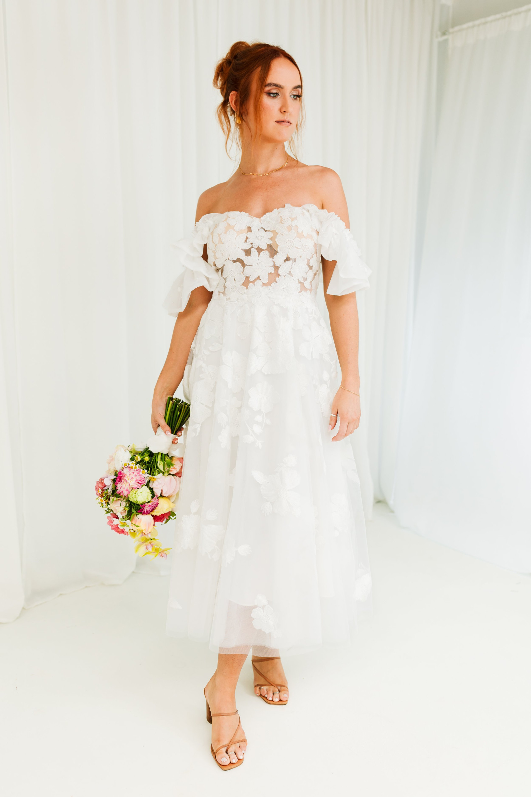 This stunning one shoulder design is so chic and flattering. It features a side zipper, split and buttons for an edgy but fun design. The material is a soft crepe which gives a beautiful flowy effect.
