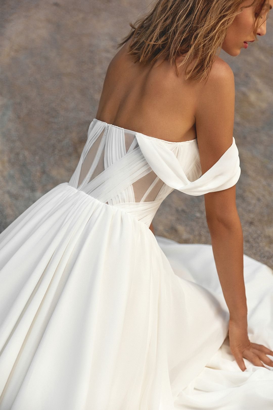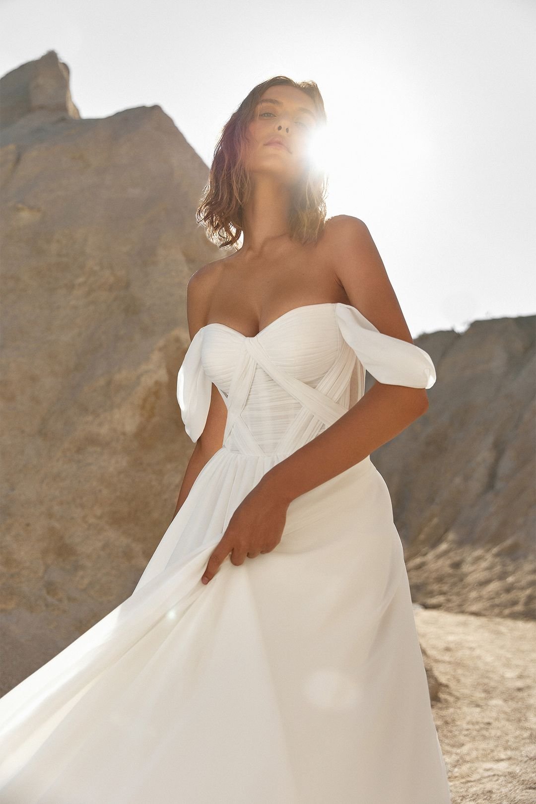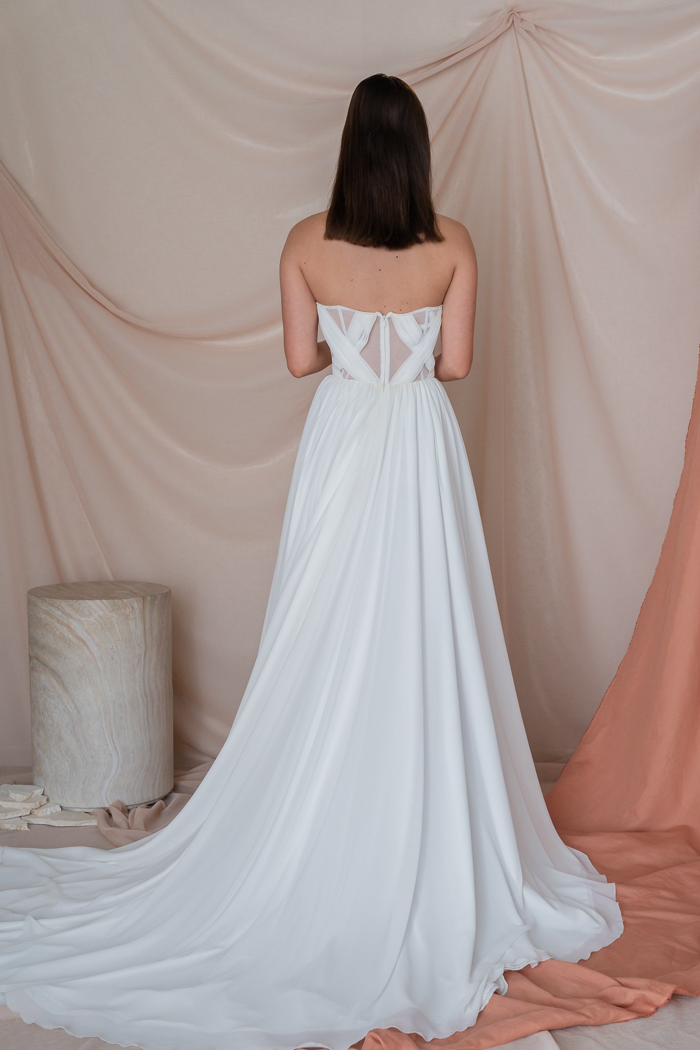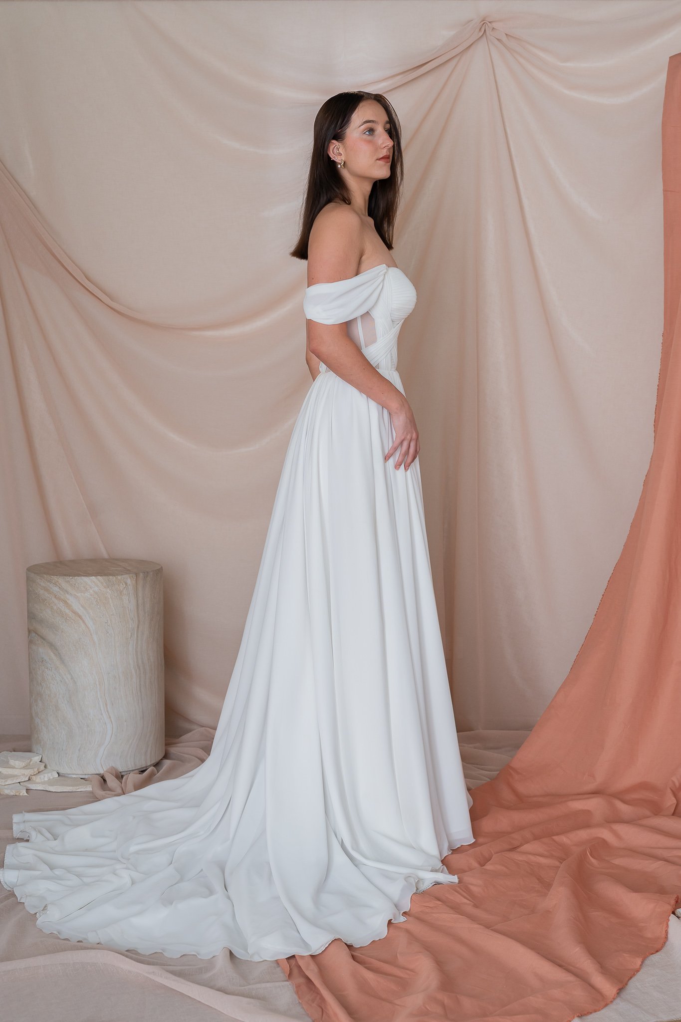 This stunning gown is made of high quality chiffon and falls and drapes so beautifully. The sleeves are detachable and the style is totally customisable. It’s so romantic and feminine.