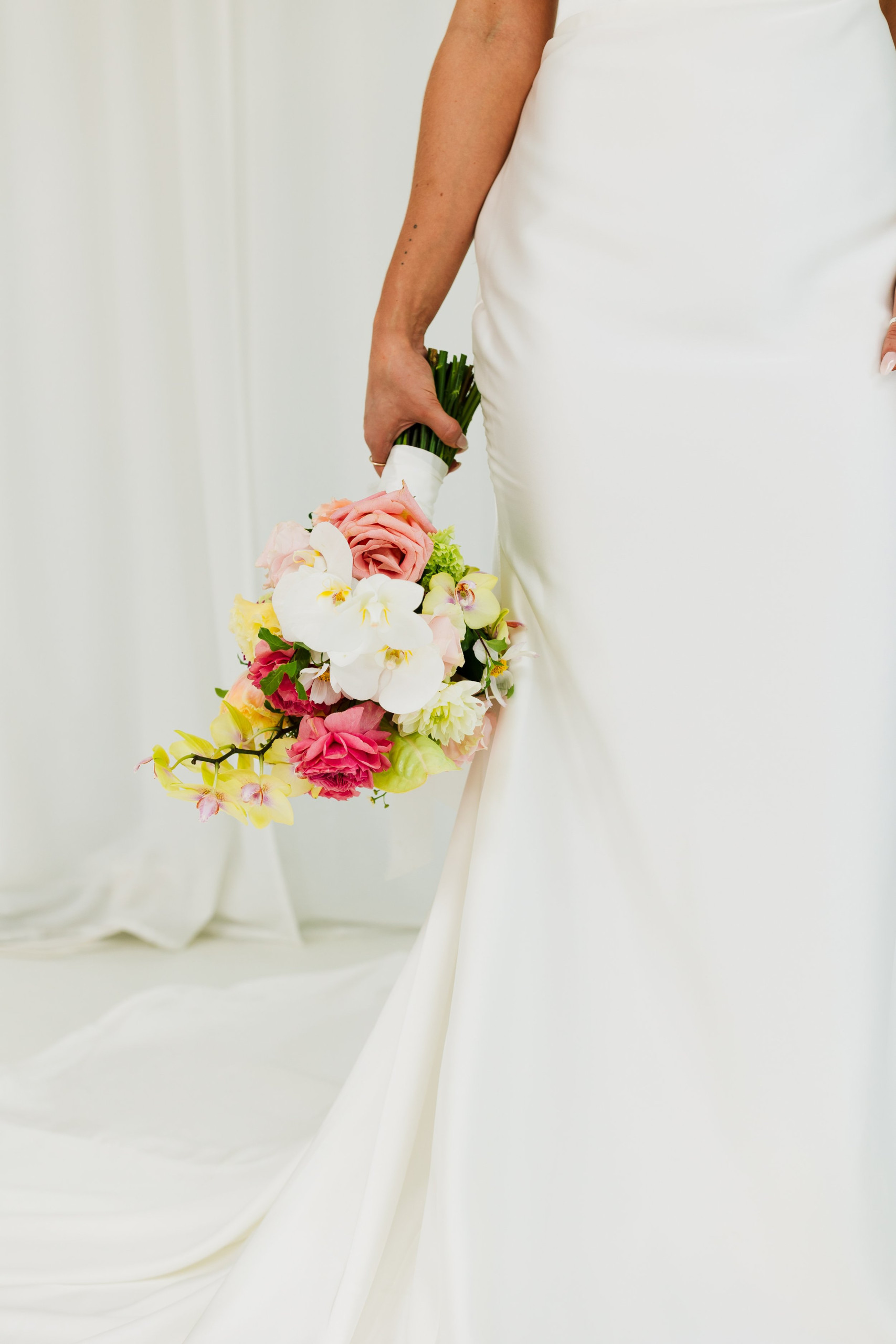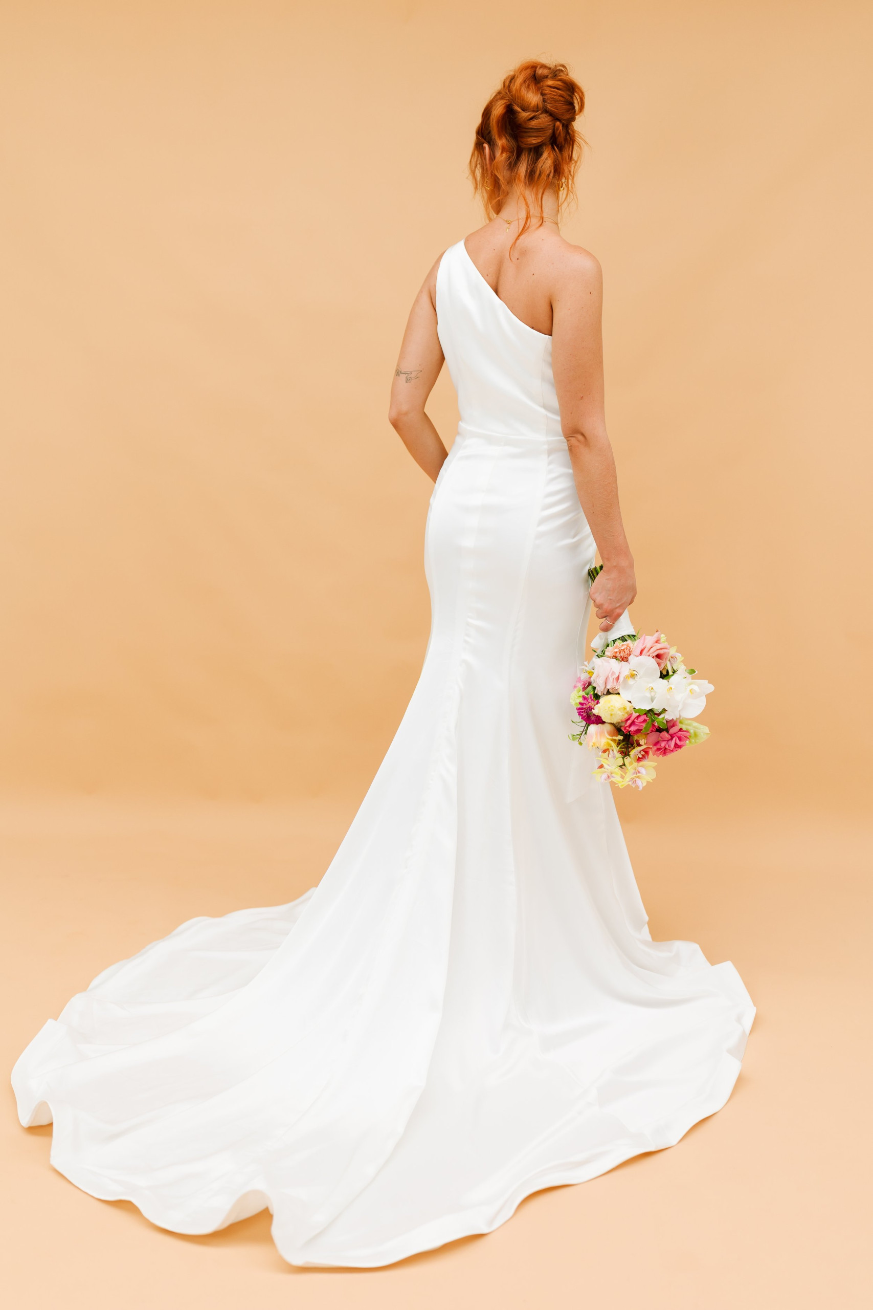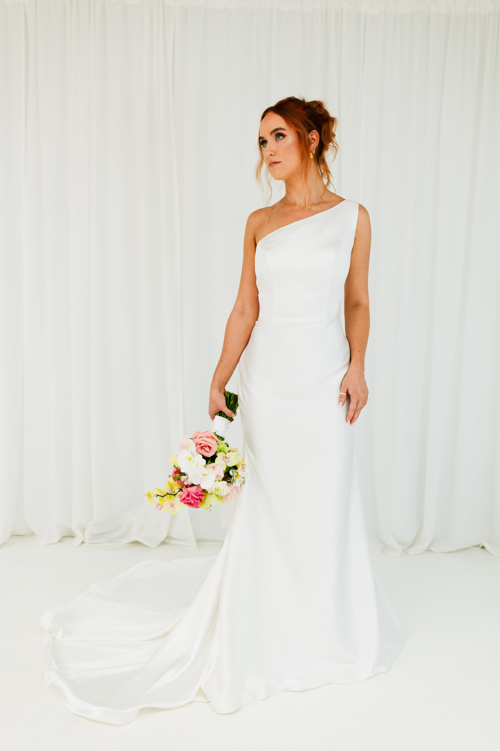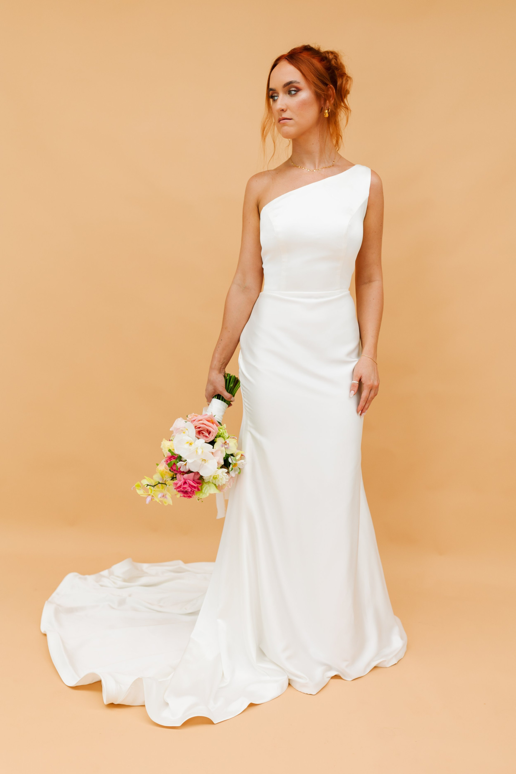 This breathtaking gown is a bit of a fan favourite! We’ve done her as a high-low, with a detachable skirt or used fabric as a mini. She’s totally customisable – or keep her as is! Isn’t she a cutie? The stunning glitter tulle, topped with chantilily lace and floral applique makes the skirt not only super dreamy but also carefully thought out with an eye for bridal fashion chasing the wow moment. The underlay is able to be fully lined for a more traditional look.